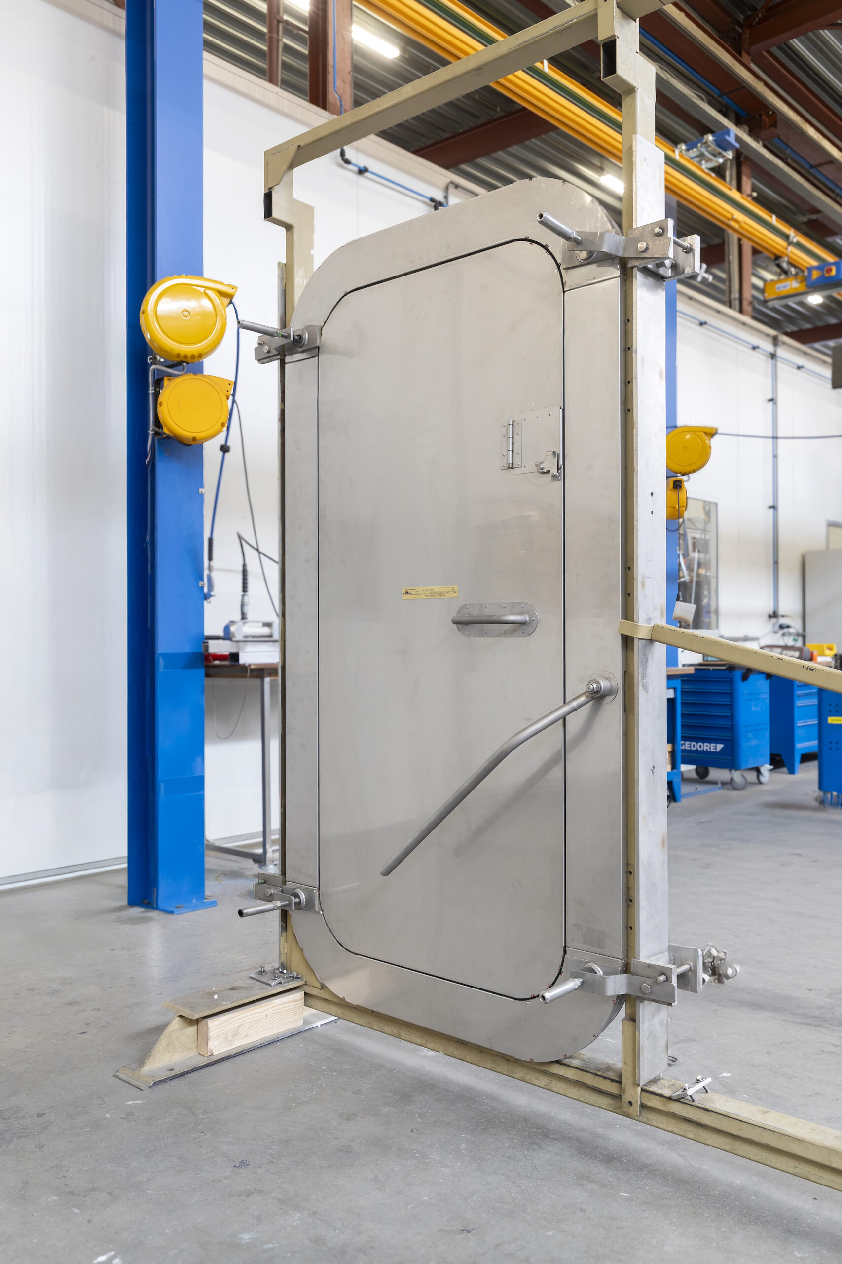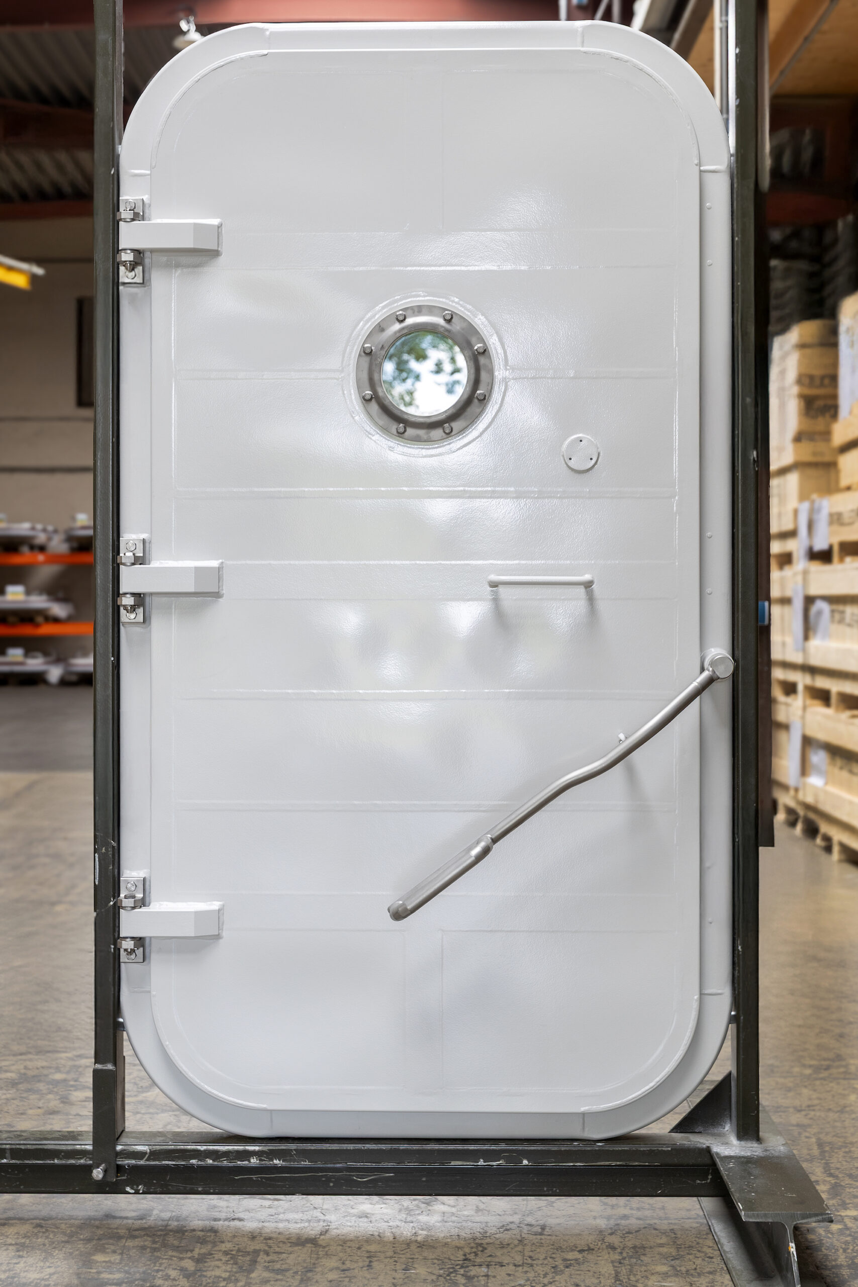 Het allerbelangrijkste kenmerk van onze waterdichte deuren is natuurlijk de absolute waterdichtheid. De deuren worden speciaal ontworpen om water volledig buiten te houden, zelfs onder zware druk of extreme omstandigheden op zee. Veiligheid is onze grootste prioriteit. Onze deuren moeten bemanning, lading en technische ruimtes beschermen tegen eventueel binnendringend water.